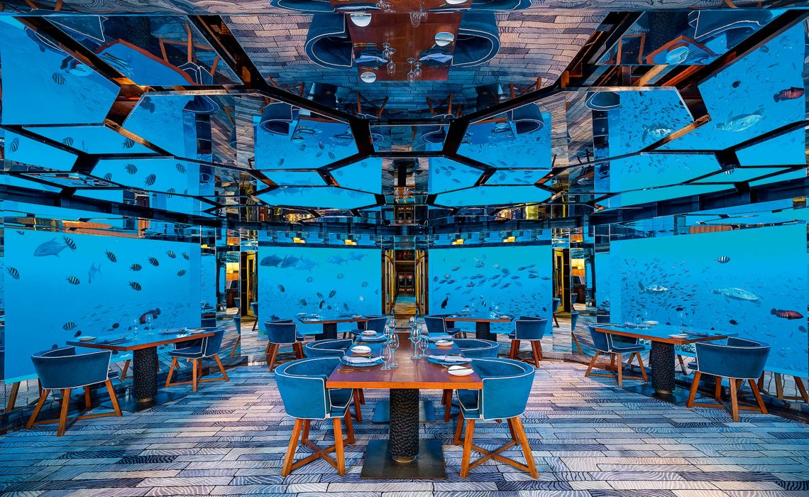 5 Restaurants (eines davon unter Wasser), 2 Bars, Swimmingpool, Spa-Center, Kinderclub (3–12 Jahre)